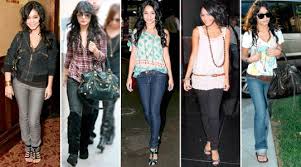 No dia-a-dia, jeans justinho, batas, camisas ou camisetas folgadinhas e uma corrente comprida no pescoço são o look mais comum de Vanessa Hudgens. Para completar o visual, ela prefere sandálias e botas de salto baixo, e até arrisca uma rasteirinha ou um chinelo, como no último look abaixo. Super confortável.